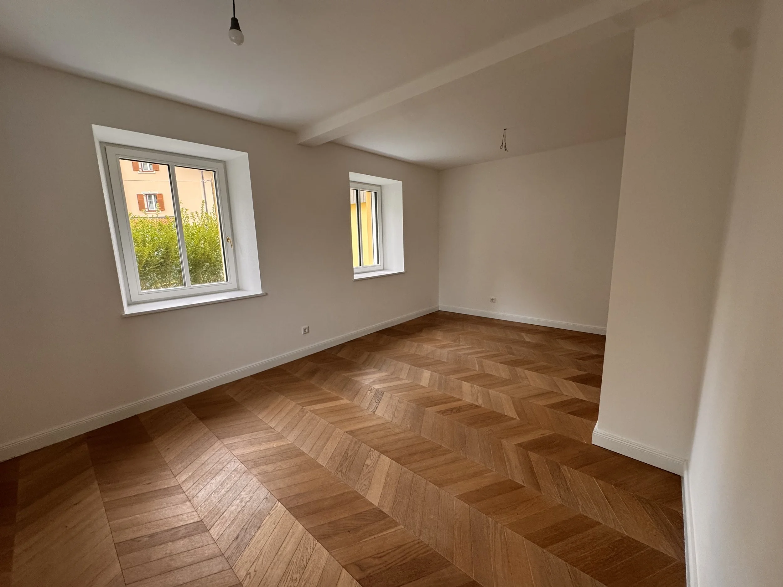Diese besondere Stadtwohnung wird durch eine Garage und ein Kellerabteil ergänzt, die zusätzlichen Stauraum und Komfort bieten. Der Garten ist ideal für sonnige Tage und gesellige Abende im Freien.